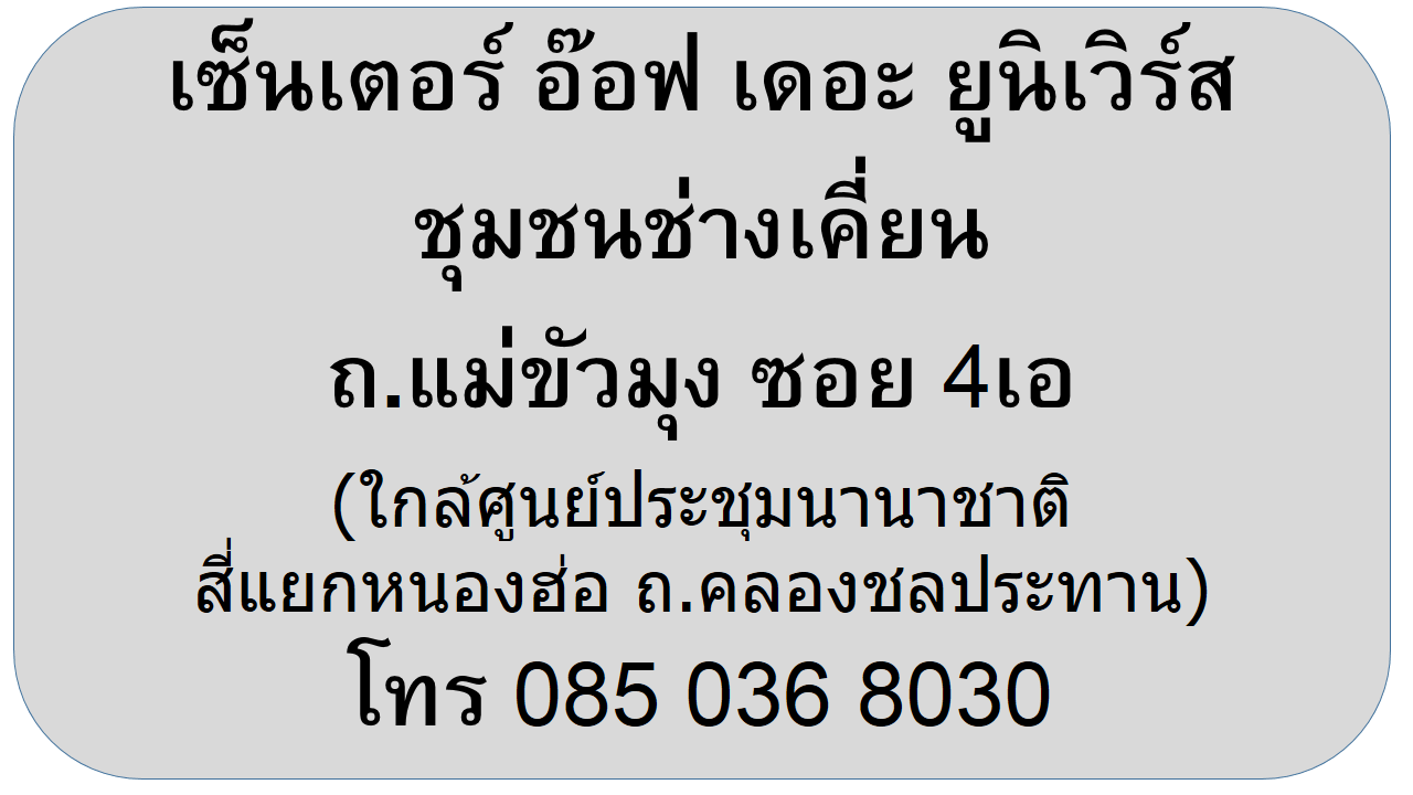 Address and telephone number in Thai of Centre of the Universe Chiang Mai Swimming Pool and Resort